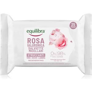 Equilibra Rosa Ialuronica - Salviette Micellari Struccanti in Tessuto Naturale con Acido Ialuronico e Acqua di Rosa Fermentata, 25 Pezzi