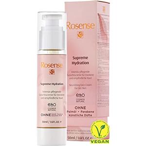 Rosense Supreme Idration - Crema viso nutriente vegana per pelli secche e sensibili con acqua di rose e acido ialuronico - 50 ml