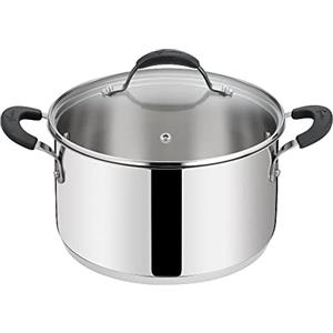 Lagostina Tempra Acciaio Casseruola Fonda e Coperchio, Casseruola Ø 24 cm in Acciaio Inox 18/10 + Coperchio in Vetro, con Fondo Lagotherm e Maniglie in Silicone