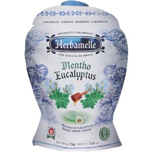 Herbamelle Milano Caramelle Eucalipto con Goccia di Miele - 75g, Caramelle Naturali per Sollievo della Gola