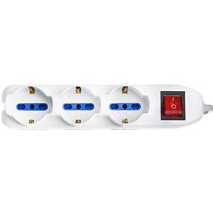 Electraline Multipresa Tripla 4 Posti Polivalenti Schuko e 10/16A con Interruttore e Cavo da 1,5 m - 62073