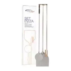Gi.Metal Set Completo per Pizza 4 Pezzi - Pala, Palettino, Spazzola e Appendipale per Uso Domestico