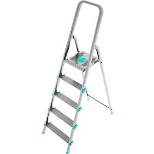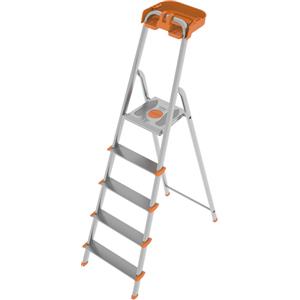 Colombo Scala Attica in Alluminio con 5 Gradini, Portata Massima 150 kg, Vaschetta Portaoggetti Ribaltabile, Piedini e Gradini Antiscivolo, Certificata EN 131
