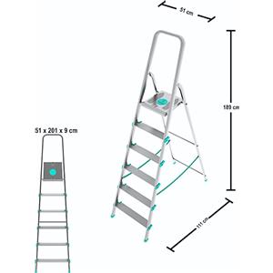 Colombo Scala LIBELLULA 6 gradini in Alluminio Silver - Antiscivolo, Portata Max 150 kg, Dimensioni Chiuso 51 x 9 x 201 cm