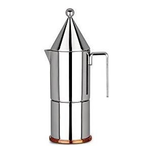 Alessi La Conica 90002/3 - Caffettiera di Design in Acciaio Inox e Fondo in Rame, 3 Tazze