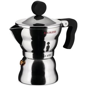 Alessi Moka Caffettiera Espresso 1 Tazza in Alluminio con Manico Ergonomico - Design Alessandro Mendini