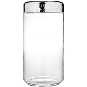 Alessi AKK38 Barattolo Ermetico in Vetro Serigrafato con Coperchio in Acciaio Lucido - Capacità 150 cl, Diametro 10.50 cm, Altezza 21.60 cm