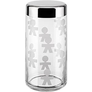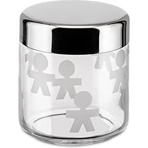 Alessi Girotondo Barattolo Ermetico in Vetro Serigrafato con Coperchio in Acciaio Lucido - 75 cl, 10.5 x 10.5 x 12.3 cm