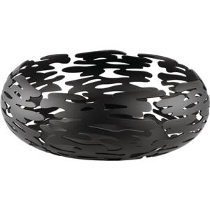 Alessi Barknest BM02 B - Cestino Portafrutta di Design con Decoro Traforato in Acciaio Inox 18/10, Nero