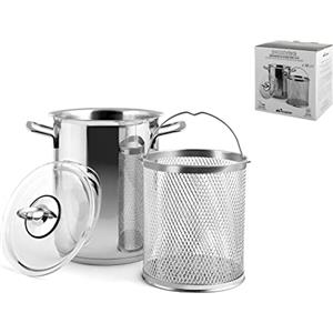Inoxpran Pentola per Asparagi in Acciaio Inossidabile 16 cm con Cestello - Ideale per Verdure e Pasta, Compatibile con Tutti i Piani di Cottura