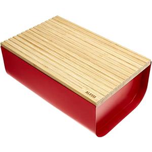 Alessi Mattina BG03R - Cassetta per Pane Rosso in Acciaio e Legno di Bambù con Tagliere Incorporato