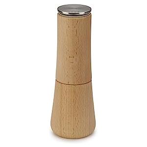 Joseph Joseph Milltop Macinasale Senza Perdite, Ricaricabile con Meccanismo di Macinatura in Ceramica, Legno di Faggio