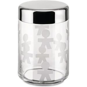 Alessi Girotondo Barattolo Ermetico in Vetro Serigrafato con Coperchio in Acciaio Lucido - 75 cl, 10.5 x 10.5 x 12.3 cm