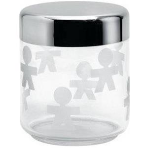 Alessi Girotondo Barattolo Ermetico in Vetro Serigrafato con Coperchio in Acciaio Lucido - 75 cl, 10.5 x 10.5 x 12.3 cm