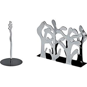Alessi Mediterraneo ESI02 Portarotolo da Cucina per Scottex da Appoggio di Design, in Acciaio Inox Lucido 18/10 & Mediterraneo Portatovaglioli di Carta, Cartone, Argento