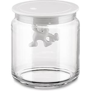 Alessi AMDR06 W Gianni a Little Man Holding On Tight Barattolo Ermetico in Vetro con Coperchio in Resina Termoplastica, Bianco, 140 cl
