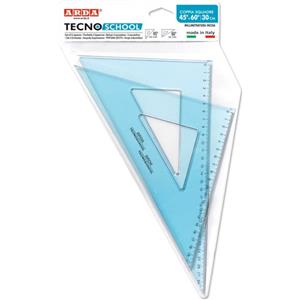 ARDA Coppia di Squadre Tecnoschool 45° e 60° in Plastica Azzurro Trasparente - 30 cm, Confezione da 2 Pezzi