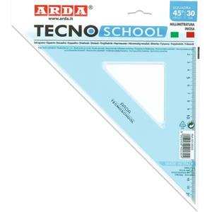 Arda Squadra Tecnoschool 45° 30 cm in polistirolo termoresistente azzurro trasparente con graduazione incisa