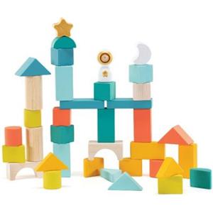 Sevi Set Cubetti Astronauta con Secchiello in Legno - 37 Pezzi, Giochi Impilabili e Costruzioni