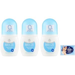 Felce Azzurra 3x BREEZE Freschezza Talcata Deodorante Roll On 50ml + 1 Confezione di Talco Felce Azzurra in omaggio, Busta da 100g
