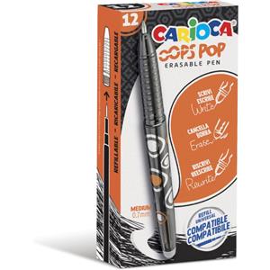 Carioca Oops Pop - Penna Cancellabile Ricaricabile con Inchiostro Termosensibile, Punta Media 0,7 mm, Confezione da 12 Pezzi