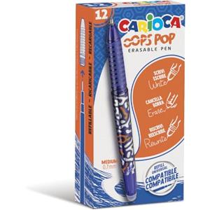 Carioca Oops Pop - Penna Cancellabile Blu con Punta Media 0,7 mm, Confezione da 12 Pezzi, Impugnatura Ergonomica e Refill Disponibili