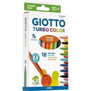 Giotto Turbo Color - Pennarelli Punta Fine 2,8 mm, Confezione da 18 Colori Assortiti, Inchiostro Innocuo e Lavabile