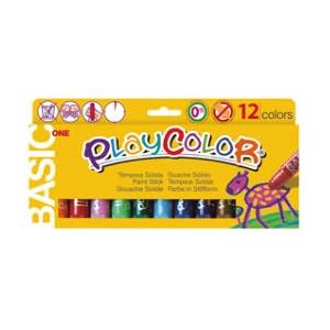 Playcolor Tempera Solida in Stick da 10gr - 12 Colori Assortiti, Facile e Lavabile