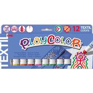 Playcolor Tempera Solida per Tessuti - Set da 12 Colori Assortiti in Stick da 10 gr