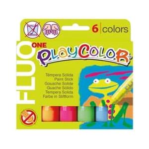 Playcolor Tempera Solida in Stick 10 g - 6 Colori Assortiti Fluo, Facile e Lavabile