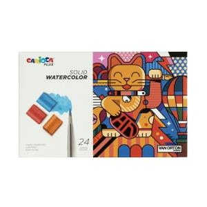 Carioca Acquerelli Solidi a Grana Fine - Astuccio da 24 Colori Assortiti con Pennello Incluso