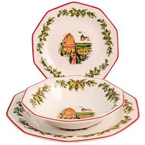 H&h Servizio Tavola Natalizio 18 Pezzi Montana in Stoneware Decorato con Motivi Festivi