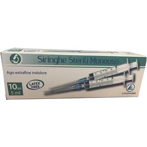 LOGITER ONE Srl Siringa Sterile Monouso 5 ml Lotupharma - 10 Pezzi, Ago Extrafine Indolore, Latex Free