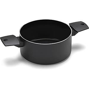 Agnelli Casseruola Alta Al-Black 5mm con Rivestimento Antiaderente B-Cristal, 16 cm, Fondo Induzione e 2 Manici in Acciaio Inossidabile
