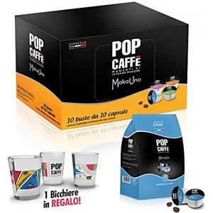 POP CAFFE' Pop Caffè - Moka uno Decaffeinato 100 capsule compatibili Uno System, Illy e Kimbo