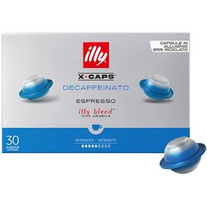 Illy Caffè Capsule in Alluminio per Sistema X-Caps Decaffeinato 100% Arabica Gusto Equilibrato con Note di Caramello, Cioccolato, Pan Tostato e Retrogusto Dolce, Confezione da 30 Capsule