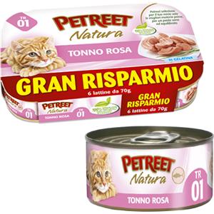 PETREET NATURA TONNO ROSA 70 gr MULTI PACK 6 LATTINE Prezzo x 18 unità
