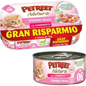 PETREET NATURA TONNO ROSA CON GAMBERETTI 70 gr MULTI PACK 6 LATTINE Prezzo x 6 unità