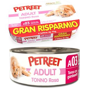Petreet Adult A03 Tonno Rosa Tonno con Gamberetti 6 x 70 gr