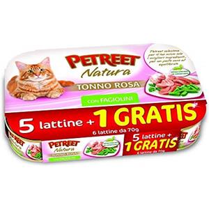 Petreet Natura Tonno Rosa per Gatto in Confezione da 6 x 70 gr Gusto A06 - Tonno Rosa e Fagiolini