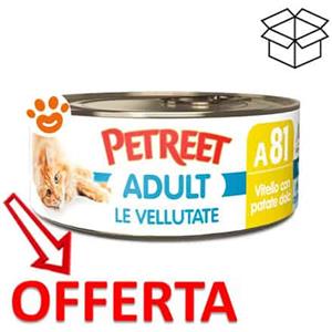 Petreet Vellutate Vitello con Patate Dolci - Cibo Umido per Gatti Adulto in Lattina da 70g in Alimenti Cani e Gatti