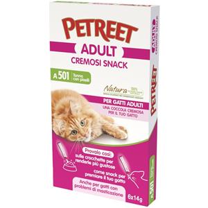 Petreet Snack Cremosi al Pollo e Tonno - Alimento Complementare per Gatti, Confezione da 6 x 14g