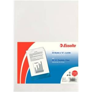 Esselte Buste a U Deluxe Trasparenti 23x33 cm - Confezione da 25 Pezzi in Polipropilene Lucido