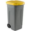 MobilPlastic Bidone Raccolta Differenziata 100L - Grigio con Coperchio Giallo, Ruote e Chiusura a Clip