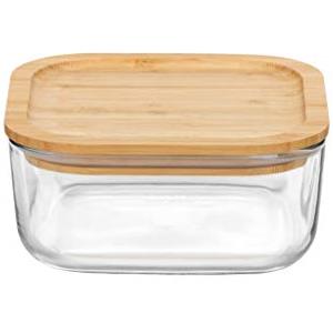 Bormioli Rocco Frigoverre Bamboo Contenitore Quadrato in Vetro 19x19 cm con Tappo in Bambù Eco-Sostenibile