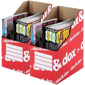 Rexel Dox&Dox Portariviste Bianco/Rosso - 35 cm, 17,5x26 cm, Cartone Riciclabile, Capienza Raddoppiata, Spazio per Personalizzazione