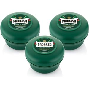 Proraso Sapone da Barba in Ciotola Rinfrescante, 3 x 150ml, Sapone barba per la rasatura arricchito con Olio di Eucalipto e Mentolo, Made in Italy