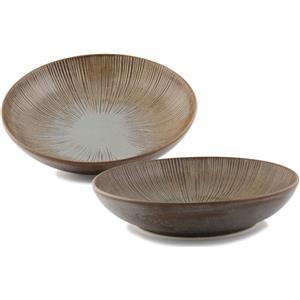 Frescura Tai Pasta Bowl Cappello del Prete 23 cm in Stoneware Colore Terra - Set da 6 Pezzi con Decoro Radiale