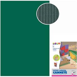 DECO Cartoncino Ondulato Cannetè Verde Scuro 50x70 cm - 230 g/m² - Confezione da 10 Fogli