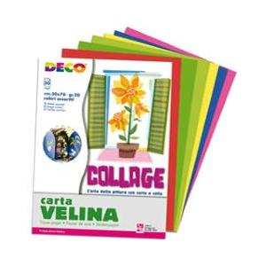 DECO Carta Velina 50 x 76 cm - 20 g/m² - Busta 50 Fogli in 10 Colori Assortiti